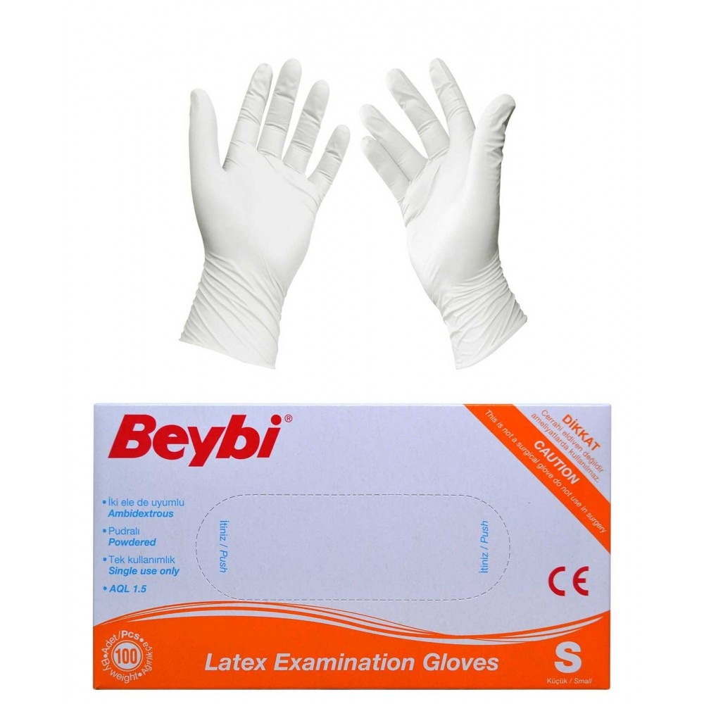 Bílé latexové vyšetřovací rukavice velikost L.