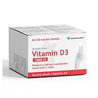 Doplněk stravy s vysokým obsahem vitaminu D3, který: přispívá k udržení normálního stavu kostí a zubů přispívá k normální činností svalů přispívá k normální hladině vápníku v krvi pomáhá snižovat riziko pádu u mužů a žen (od 60 let), jež jasně souvisí s nestabilním držením těla a svalovou ochablostí. Pád je rizikovým faktorem zlomenin kostí u mužů a žen ve vvěku 60 let a starších. Příznivého účinku je dosaženo na základě denního příjmu 20 mcg vitaminu D ze všech zdrojů. Složení aktivní složky v 1 tobolce Vitamin D3 - cholekalciferol (1000 IU) 25 µg 500 %DRHP DRHP=denní referenční hodnota příjmu Celkové složení tobolky sójový olej, (obal) želatina , (zahušťovadlo) glycerol , vitamin D3 (cholekalciferol) Doporučené dávkování 1 tobolka denně s jídlem. Upozornění: Není určeno dětem do 12 let. Přípravek ukládejte mimo dosah dětí! Nepřekračujte doporučené denní dávkování. Chraňte před teplem a světlem. Přípravek není určen k používání jako náhrada pestré stravy.