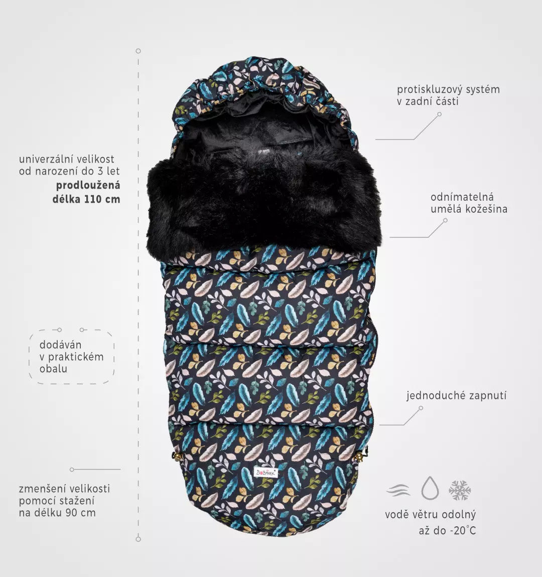 Vaše miminko z něj jen tak nevyroste a zima mu rozhodně nebude. Fusak je navržen i do té největší zimy. Fusak má celou řadu praktických vychytávek. Rozměry: Nastavitelná velikost pomocí šňůrek od 90 cm do 110 cm.