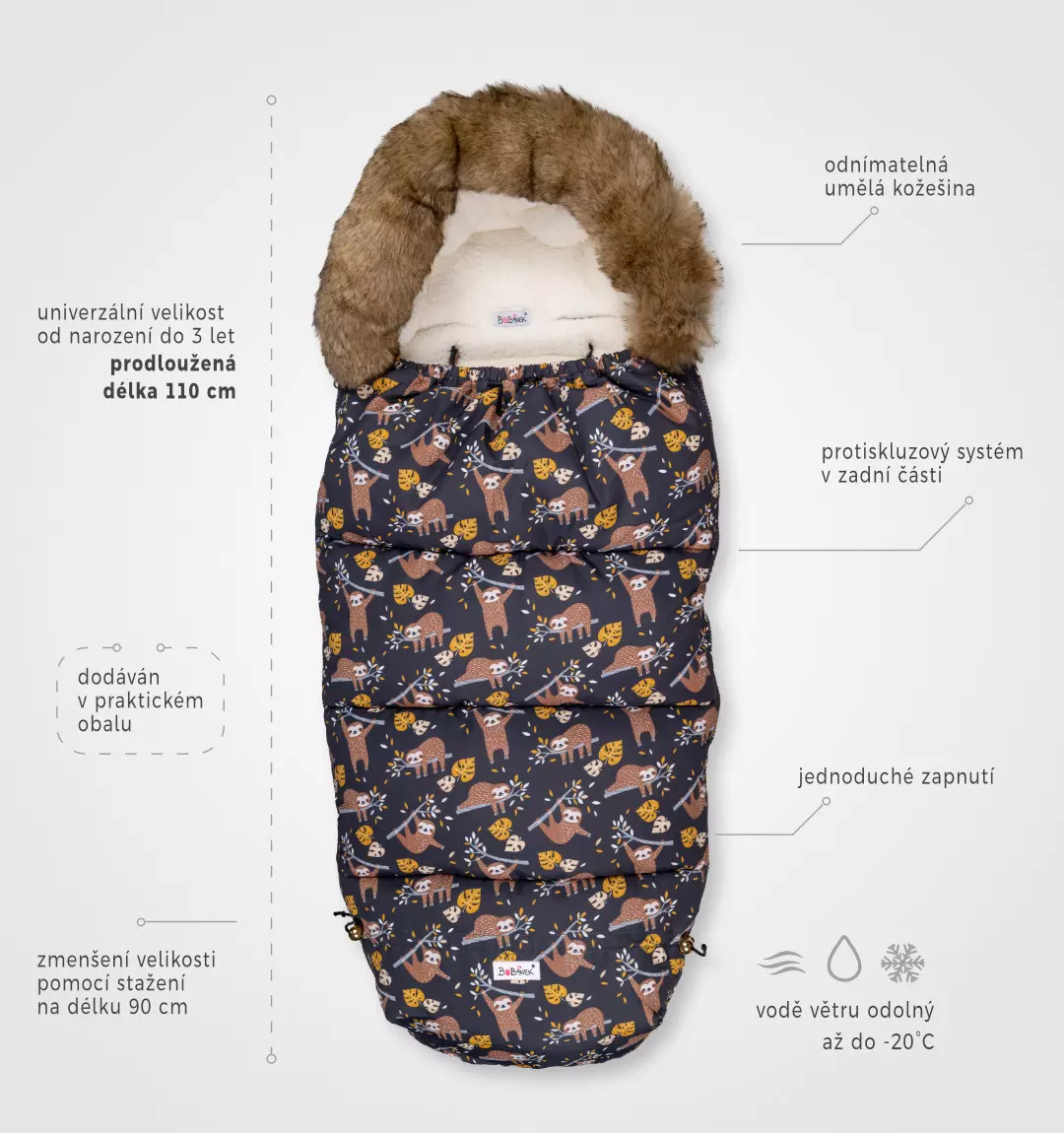 Vaše miminko z něj jen tak nevyroste a zima mu rozhodně nebude. Fusak je navržen i do té největší zimy. Fusak má celou řadu praktických vychytávek. Rozměry: Nastavitelná velikost pomocí šňůrek od 90 cm do 110 cm.