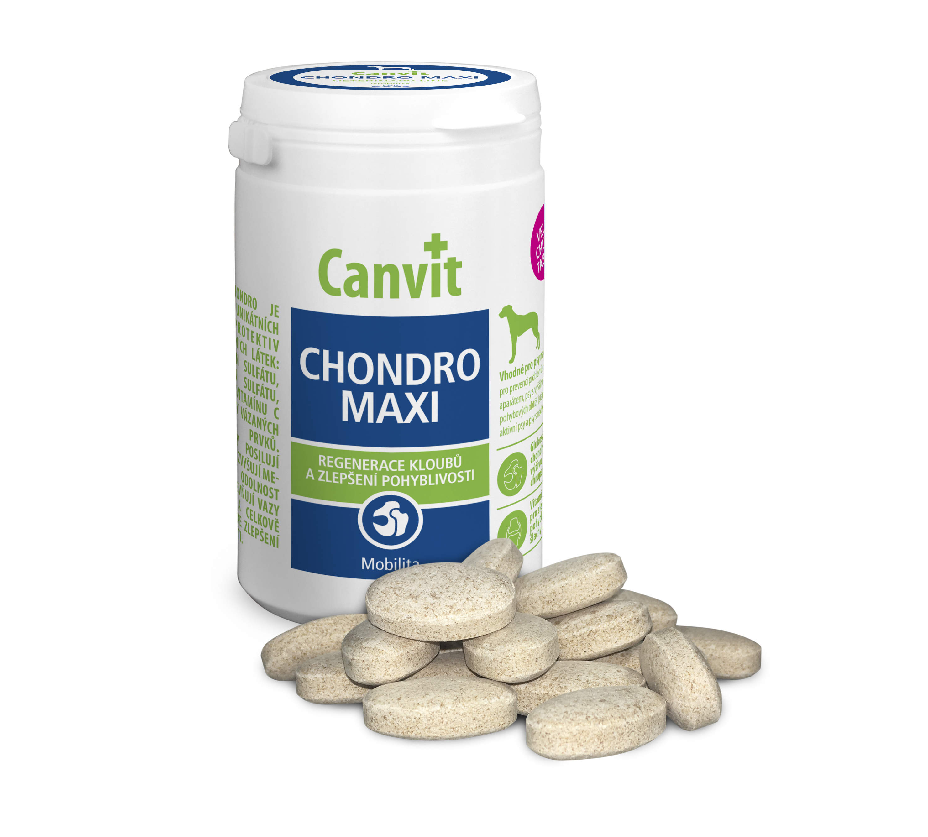 Tablety Canvit Chondro Maxi jsou psy výborně akceptovány díky hydrolyzátu kuřecích a vepřových jater.
