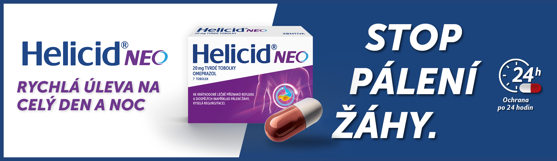 Helicid® NEO – je inovativní léčivý přípravek s obsahem omeprazolu s okamžitým uvolňováním proti pálení žáhy a refluxu. Působí rychle a zároveň chrání před návratem obtíží na celých 24 hodin. To vše při užívání jen jedné tobolky denně.