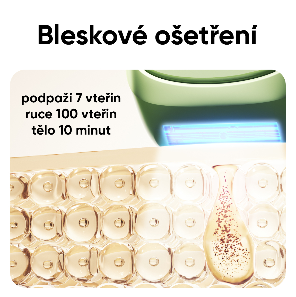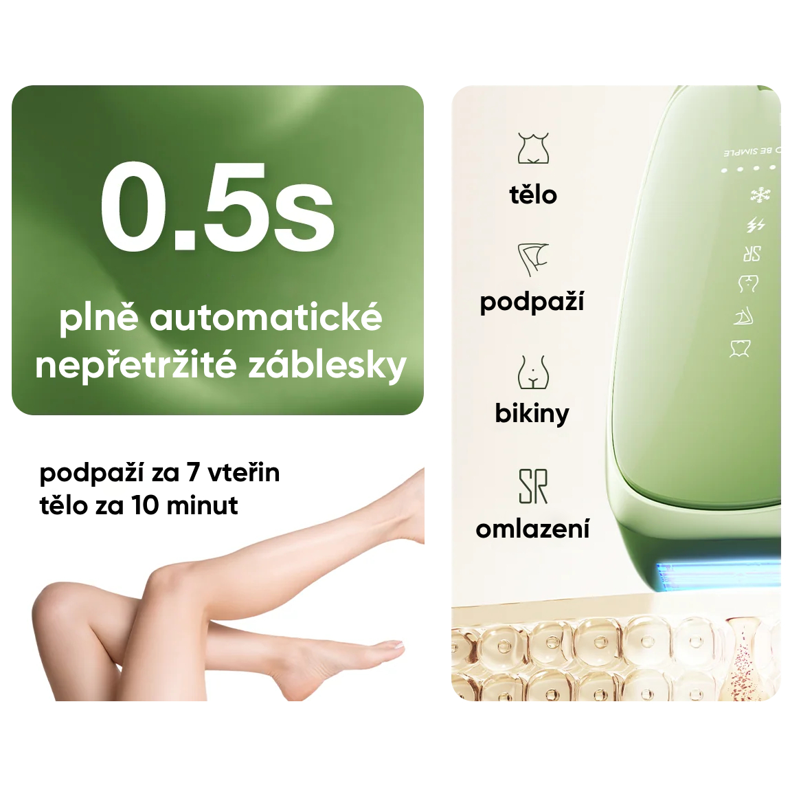 Díky vysoké rychlosti záblesků, chlazení a ergonomickému designu umožňuje rychlé, šetrné a dlouhodobé odstranění chloupků během několika minut.