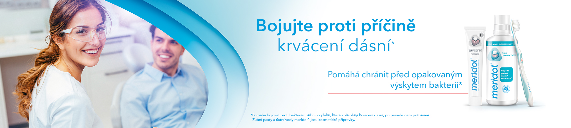 Pečujte o své zuby a dásně a zároveň odstraňte zabarvení se zubní pastou meridol® Gum Protection & Gentle White. Tato zubní pasta pro ochranu dásní byla vytvořena odborníky tak, aby cílila na hlavní příčinu* krvácení a dalších problémů dásní* a měla rychlý účinek**. Tato zubní pasta také pomáhá chránit proti opakovanému výskytu problémů dásní* a má efektivní jemné složení s kombinací dvou aktivních látek, které pomáhají přinášet rychlý účinek v boji s bakteriemi*.