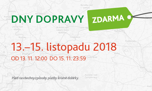 Pokud nakoupíte zboží v hodnotě 300 Kč a více, budete mít od 13. 11. (od 12:00 hod.) do 15. 11. (do 23:59 hod.) dopravu zdarma. Vyjímku tvoří nákup na dobírku, za kterou zaplatíte 30 Kč.