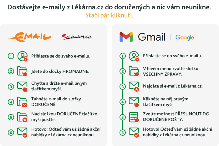 E-mailové schránky přes Seznam.cz a Google.cz mají nastavený mechanismus, který e-maily automaticky třídí a vybírá pro vás jen ty nejzajímavější. Protože ale žádný mechanismus není dokonalý, tak se může stát, že vám důležité novinky z Lékárna.cz padají tam, kde je na první pohled nevidíte.