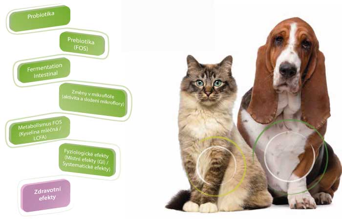 - FRUKTOOLIGOSACHARIDY (FOS) - Prebiotický efekt způsobující podporu a udržení bakteriální populace střevní flóry, konkrétně laktobacilů, které jsou klíčové pro kontrolu E-coli. Jsou spojovány s produkcí kyseliny mléčné a AGCC a zlepšují lokální a celkovou imunitu produkcí imunoglobulinů a B lymfocytů prostřednictvím GALT.